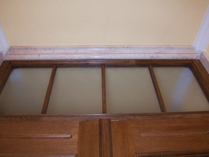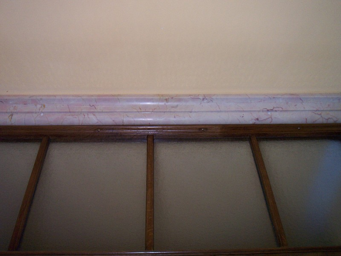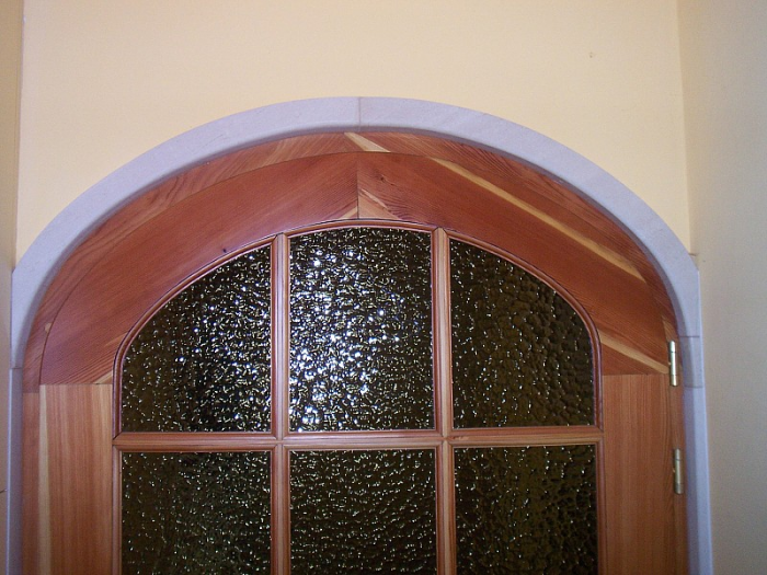 Megoldás: A forma adott volt a stukkó formájában ezért csak a padló színéhez passzoló anyagot kellett keresni. Az egyik ajtónál Mocca Cream lett, a másiknál siklósi sárgát választottak.