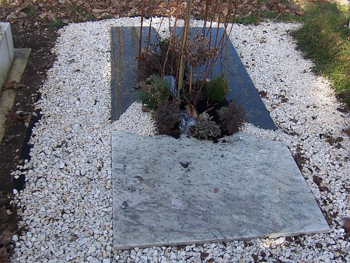 A feladat: Egy gyermekkori barátom édesapja halálát követően keresett meg egyedi elképzelésével. Nem szeretett volna, sablonos, mindennapi sírkövet. A szentháromságot jelképezve, háromféle kőből szerette volna, ha elkészül, a közepén egy fával.