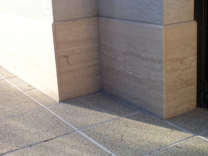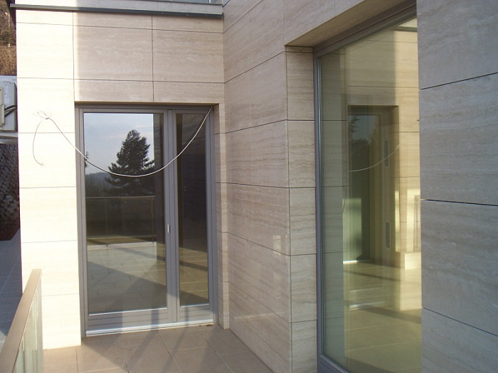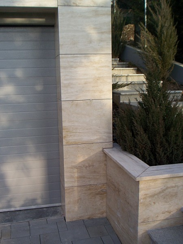 A feladat: Egy újonnan épült családi ház homlokzati munkáival bízták meg cégünket. A megrendelőknek határozott elképzelésük volt, hogy Travertin mészkővel burkoljuk be a falat.