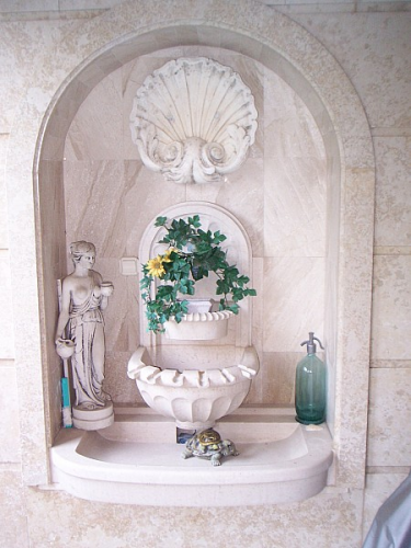 A Készítés időtartama: A vágás, a faragás és a kézi csiszolás két hétig, a helyezés, a szivattyú beépítéssel együtt két napig tartott.