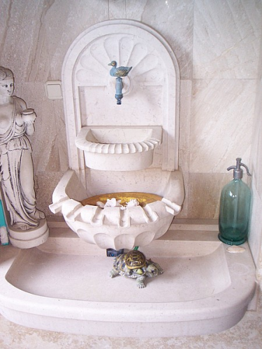 Megoldás: A csobogó formáját egy albumban találtuk. Az anyagát pedig, egy a műhelyben talált rég elfeledett kő adta.